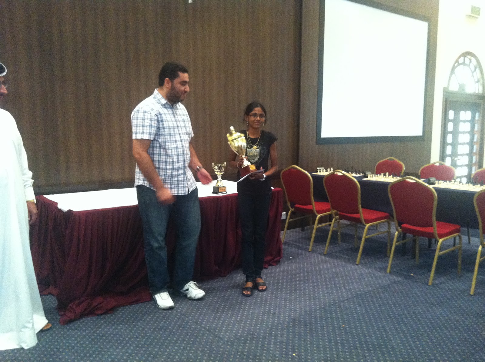 Mr Ali Al Sulaiti ( representing the Bahrain Chess Club who sponsored the Prizes )